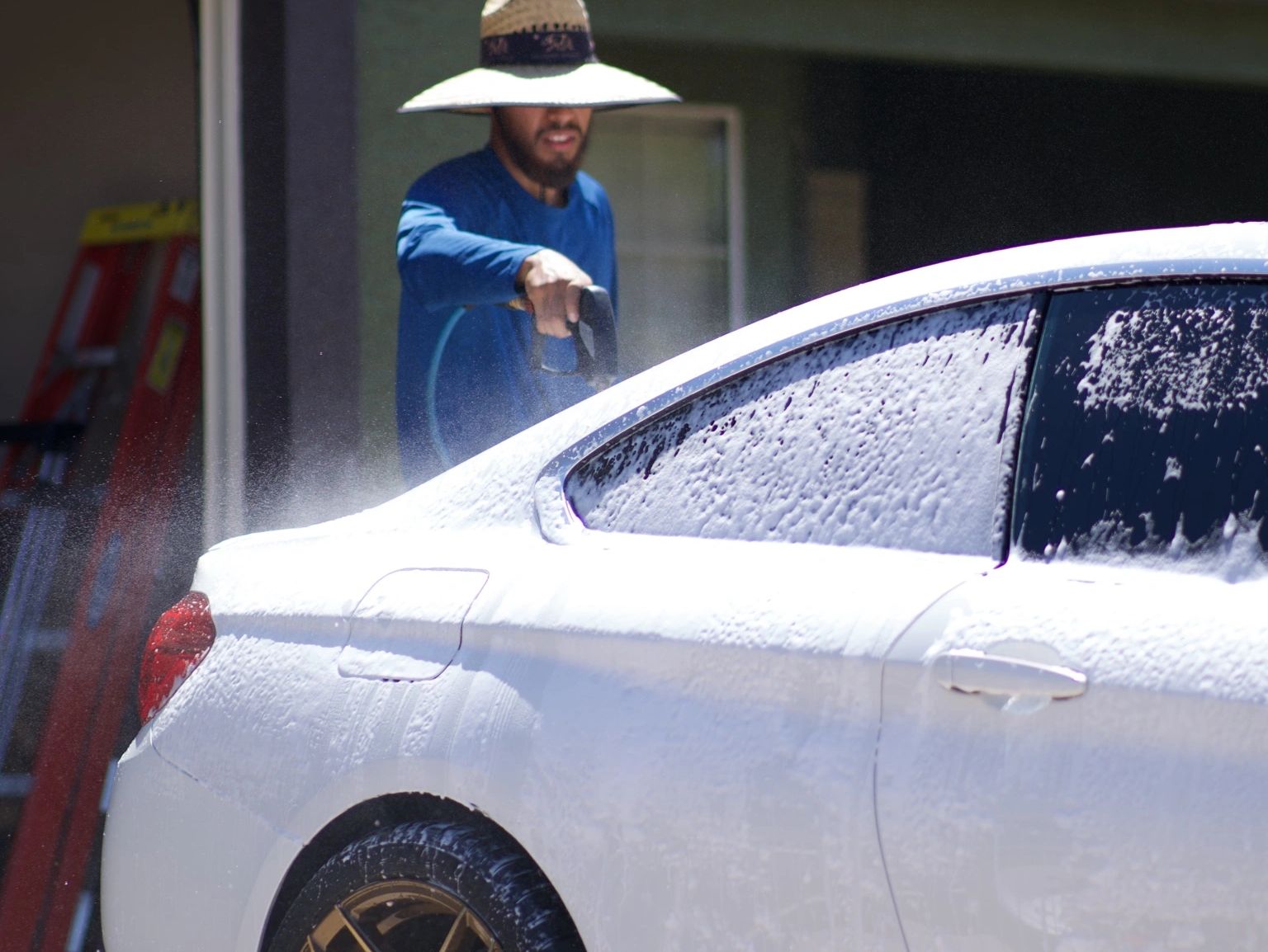 Vehicle is hand washed making sure the door jambs and gas cap are also cleaned. Bugs or road tar are removed as well.